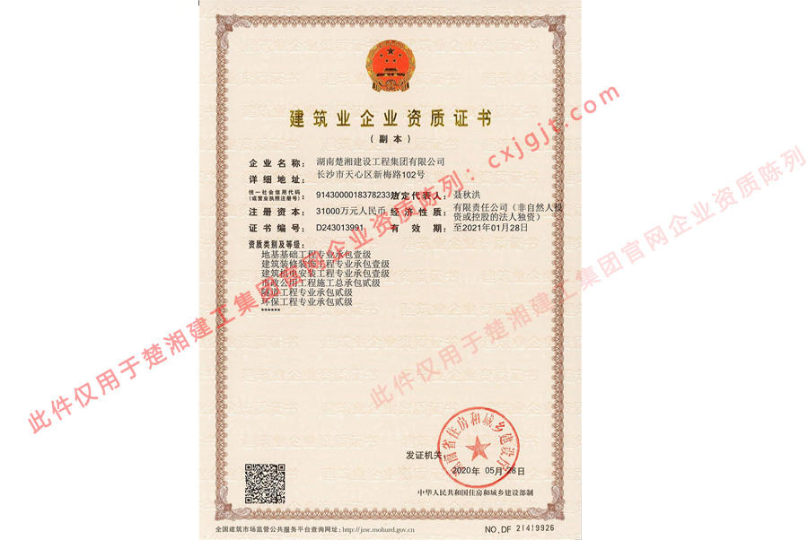 經過60余年的長足發展,楚湘建工集團業已成為集18余項施工資質于一體的綜合性建筑施工企業。